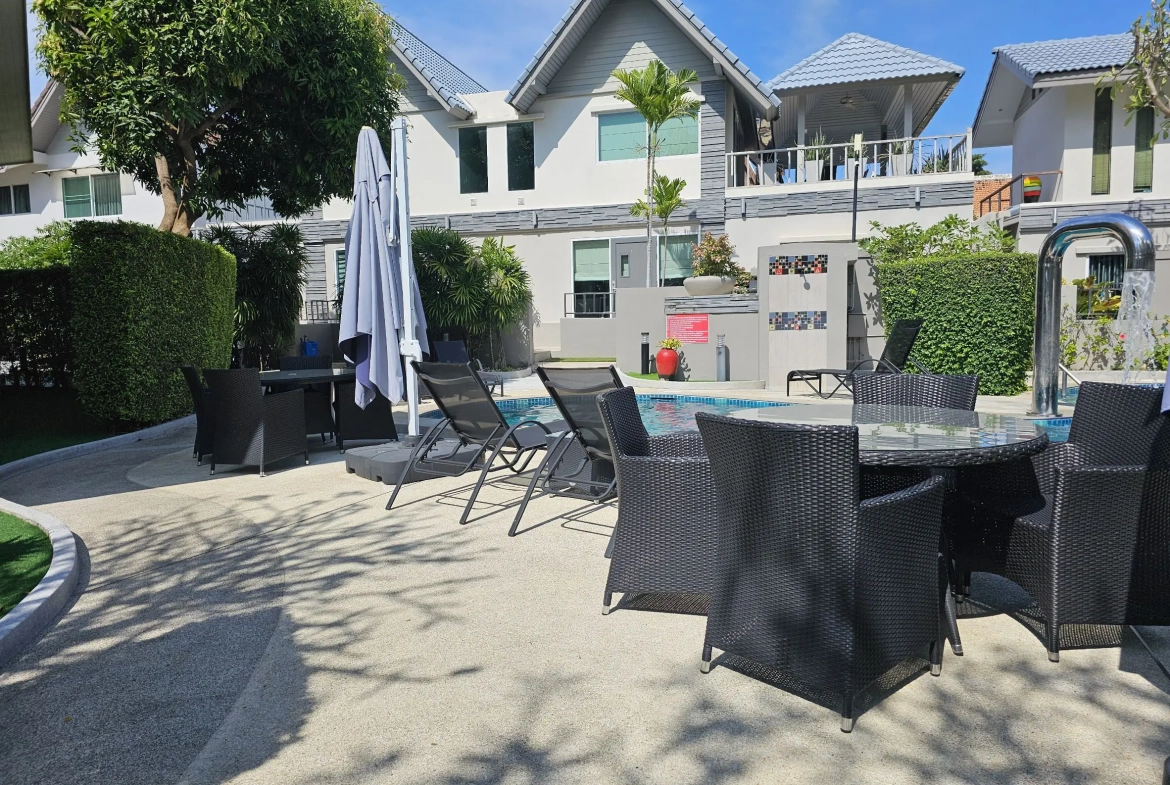 Купить 2-комн. виллу 212м2, в резиденции Chateau Dale Thai Bali Resort Condominium в районе Теппрайя в г. Паттайя, Таиланд. Оформить объект можно в собственность, или на компанию. Просьба уточнять у менеджера. Стоимость 7500000 бат, без комиссий.